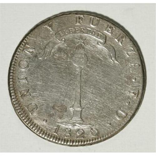 <B>Republic Peso 1820-FD,</B></I> KM82.2, VF+, cleaned long ago and now beginning to tone, scarce date, few tiny surface marks.<BR><BR><b>Shipping:</b> Coins & Currency (<a target="_blank" href="http://www.heritageauctions.com/common/shipping.php">view shipping information</a>)