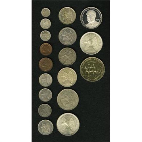 <B>Republic Type & Date Selection,</B></I> KM161 Centavo 1919 UNC, KM164 2 Centavos 1919 UNC, KM155.2a 5 Centavos 1919 AU, KM156.1 10 Centavos 1896 UNC, KM166 10 Centavos 1920 BU, KM151.2 20 Centavos 1899 cleaned XF, KM151.3 20 Centavos 1913 F-VF, KM151.4 1916 nice AU, KM163 40 Centavos 1907, choice UNC, rare date, KM152.2 Peso 1905 toned XF, KM152.3 Peso 1910 UNC, KM152.4 Peso 1915 AU-UNC, KM152.5 Peso 1921 VF-XF, KM176.1 Peso 1933 AU, KM173 5 Pesos 1927 (2), both nice BU, KM182 5 Pesos 1968 cameo Proof and KM186 200 Pesos 1967, uniface trial strike in lightweight golden metal with an incuse version of the design on the reverse, brilliant UNC. Very rare, and the first we've seen. <B>Sold as is, no return lot.</B></I><BR><BR><b>Shipping:</b> Coins & Currency (<a target="_blank" href="http://www.heritageauctions.com/common/shipping.php">view shipping information</a>)