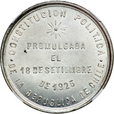 Chile. Silver Medal, 1925-So. 38 mm. "CONSTITUCION POLITICA - DE LA REPUBLICA DE CHILE". Reverse: Coat of arms. NGC graded MS-65.