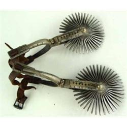 Chilean Spurs With Silver Overlay & 4" Rowels. Est $400 - $500.