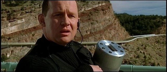 Chill Factor (1999) stunt Elvis bomb (foam) and leather backpack ("Roots" brand). The stunt bomb was custom made by production for use by Arlo (Cuba Gooding Jr.) Tim (Skeet Ulrich) and can be seen throughout the film. (14"x7")