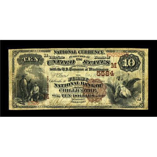 <B>Chillicothe, IL</B></I> - $10 1882 Brown Back Fr. 490 <B>The First NB</B></I> Ch. # (M)5584<BR>This is the sole Brown Back known from this scarce Peoria County issuer, which shows a large size census of just a half dozen pieces of all types and denominations combined. <B>Fine+.</B></I><BR><I>From The Lincoln Collection</B></I><BR><BR><b>Shipping:</b> Coins & Currency (<a target="_blank" href="http://www.heritageauctions.com/common/shipping.php">view shipping information</a>)