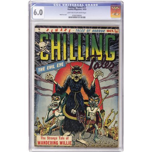 <B>Chilling Tales #17 (Youthful Magazines, 1953) CGC FN 6.0 Light tan to off-white pages.</B></I> Matt Fox is credited with this disturbingly weird scene... or is it weirdly disturbing? Note that the highest-graded copy CGC has certified is just a 7.0. Overstreet 2006 FN 6.0 value = $123. CGC census 3/07: 3 in 6.0, 2 higher.<BR><BR><b>Shipping:</b> Comics - Slabbed (certified) (<a target=""_blank"" href=""http://www.heritageauctions.com/common/shipping.php"">view shipping information</a>)