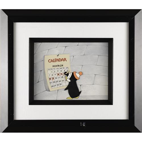 <B>Chilly Willy Hand Painted Cel and Background Original Art (Walter Lantz Productions, undated).</B></I> Chilly marks the days until the warm season, in this gorgeous hand inked and hand painted cel, with original painted background. The image area measures 11" x 8.5". Matted and framed and in Excellent condition. <BR><BR><B>Important notice:</B> Heritage usually auctions material at the rate of 200-250 lots per hour. On some occasions eBay Live bid software or the Internet may not be able to keep up with the pace of the auction. We recommend placing a realistic absentee bid now as insurance to avoid disappointment. Occasionally the auctioneer may eliminate or reject an eBay Live bid, and the auctioneer may also reopen a lot after the close of the eBay live bidding (usually because we missed an audience bid), and may reject your bid even if it shows you as the winning bidder. By bidding via eBay Live, you agree that Heritage may award the lot to another bidder at its sole discretion under the circumstances described above or any other reasonable circumstances. Since eBay bids are not shown to us until we open the lot on the floor, we treat those bids just like floor bids. In most cases the floor responds before the eBay bid is presented to us, due to Internet lag time, so for consistency we have made it a policy that floor bids are always considered first over tie eBay live bids. Also please note that all Heritage lots purchased through eBay Live carry a 22.5% Buyer's Premium. Please make sure you read the Terms and Conditions before you bid. This lot is being auctioned in conjunction with a live floor auction by Heritage Auction Galleries. All final auction and invoice information will be supplied by Heritage Auction Galleries, and all other information should be considered preliminary. Lot:41001 <BR><BR><B>Winning Notification and Billing:</B> After the FINAL session in this auction is complete, Heritage will send e-mail and snail mail invoices. This process normally takes several days. All final auction and invoice information will be supplied by Heritage Auction Galleries, and all other information should be considered preliminary. <BR><BR>This auction will be conducted on a live auction floor and over the Internet through eBay Live. If you choose to place an absentee bid, please take a moment to <font color='#0000ff'><u><a href='http://pages.ebay.com/liveauctions/help/before/laabsentee.html'>learn how eBay Live absentee bidding works</a></u></font><font color='#000000'>
