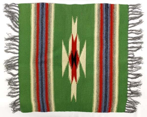 New Mexican Chimayo 100% Wool Fringed Textile, measures 19.5'' x 24'', gorgeous colors, nice tight weave