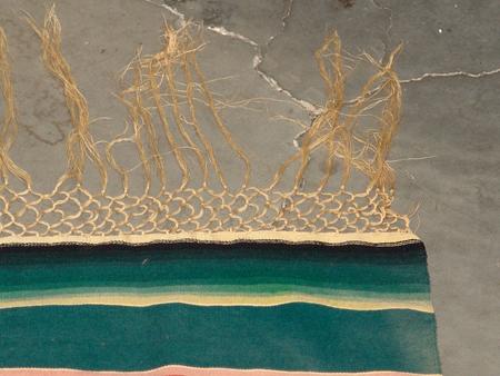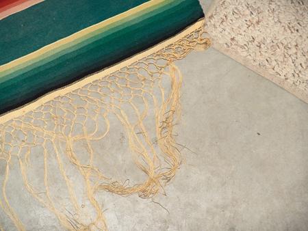 Circa Mid 1900s, Extra finely woven blanket with colorful striping with central lozenge. A borderless blanket with 9" fringe on each end. Great condition. 6'7" x 3'1" with two 9" borders