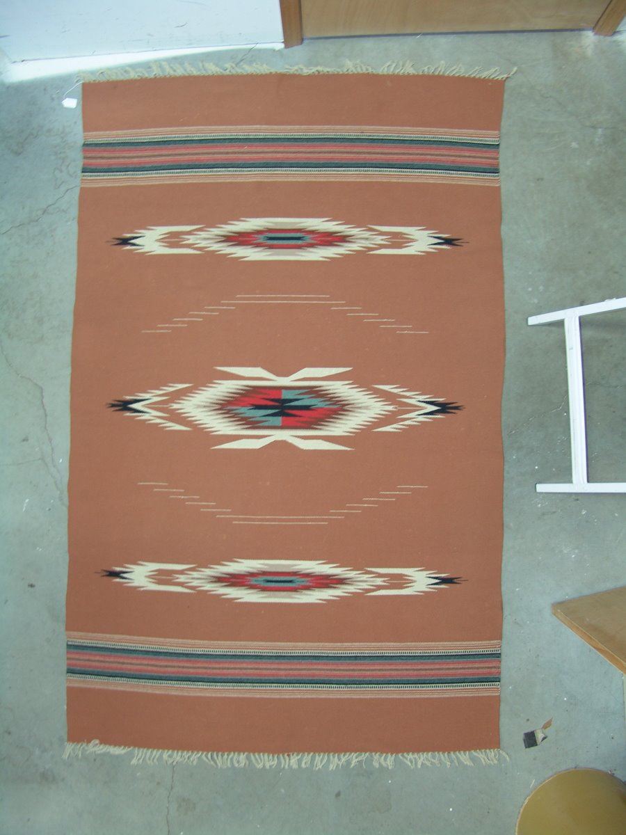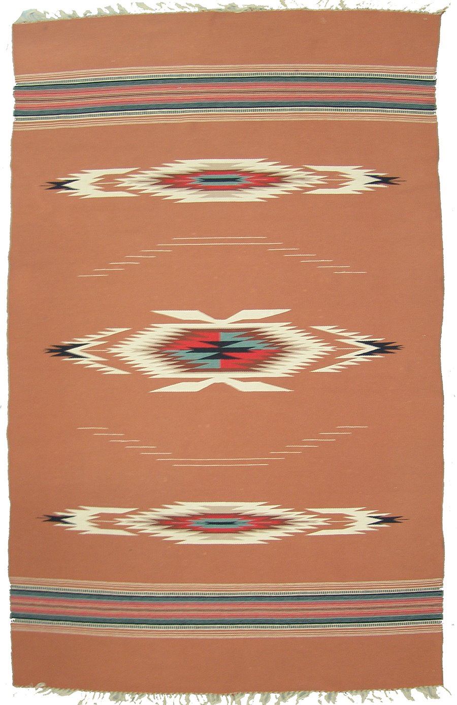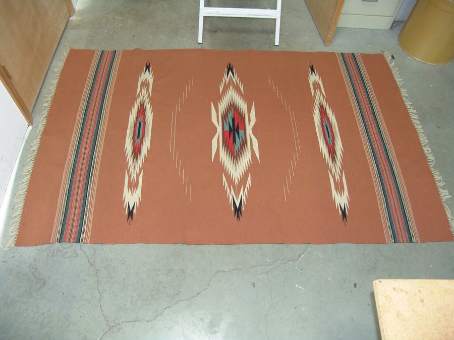 Very large fine weave blanket with serrated symbols, wavy line bands, and fringed edges. Very good condition with minor soiling.,Ca.1970s,83" x 52"