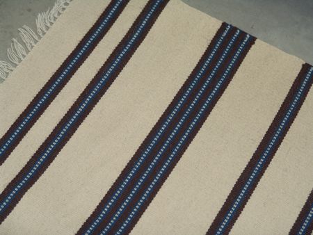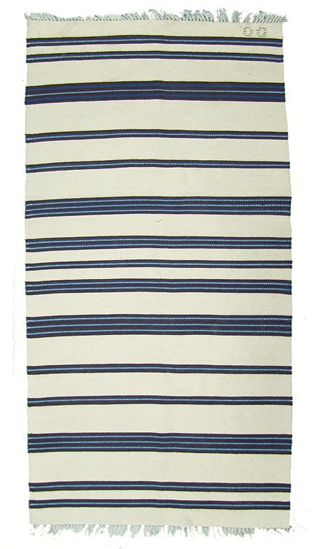 Ca. 1970s, Traditional finer weave Chimayo blanket in a simple banded design. Good condition, light soiling. 34" x 66"