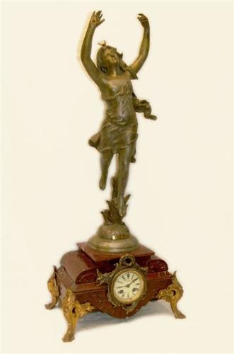Pendule de cheminée en marbre et régule représentant la nuit, en bon état, env. 1900
