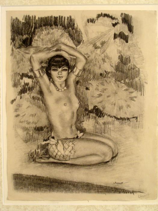 Edouard Chimot (1880-1959) trained as an architect before taking up a career in art. He went to Paris at the beginning of the century seeking various jobs and drawing in his spare time. After purchasing his own etching press he was able to produce his first etchings. His work became recognized for its compelling images of richness and excess during the period of the 1920's. Chimot brought his symbolist style into the age of Art Deco