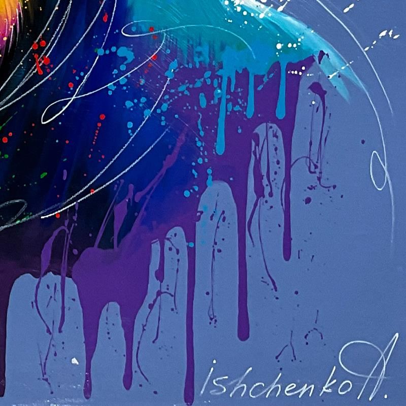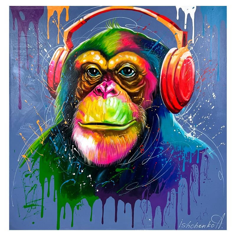 Chimp by Ishchenko Original. All available information is listed in the description and shown in the photo. "Chimp" is an original acrylic painting on canvas by Alexander Ishchenko, hand signed by the artist. Includes Letter of Authenticity. Measures approx. 36" x 36" (image).
