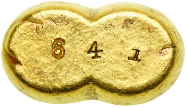 China. 1 Tael Ingot, ND. 31.1 grams. 24 mm x 13.5 mm. Late Qing / Early Republic (1644-1911). Three stamps. Reverse: Serial 641. Very Fine.