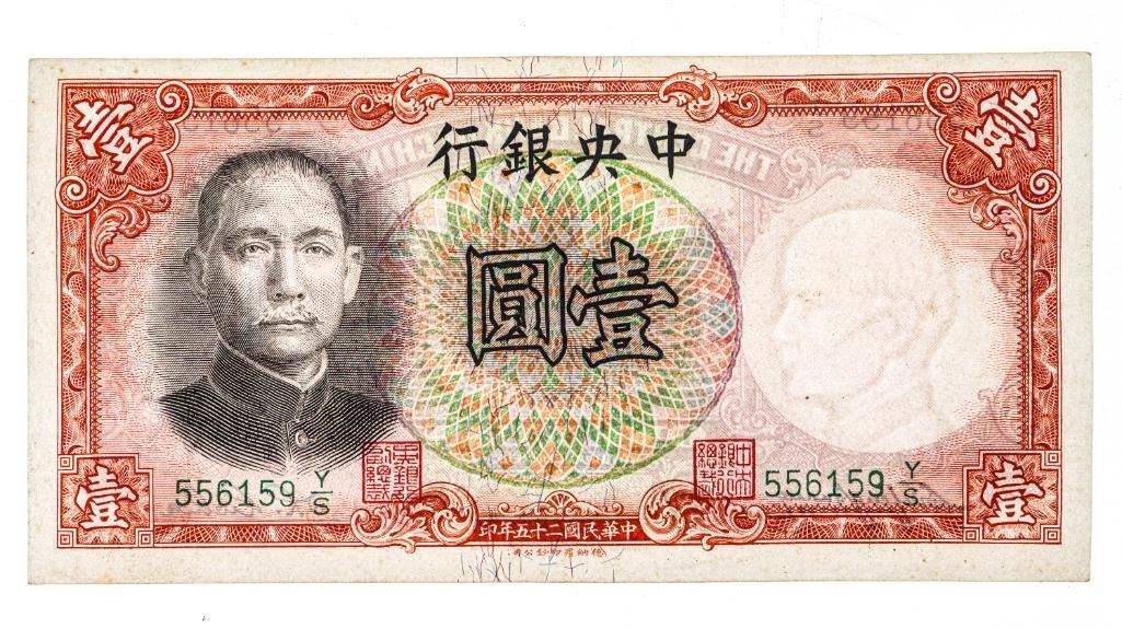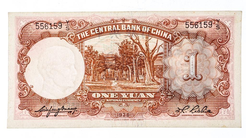 China 1 YUAN Note - Printed in 1936 in London.
