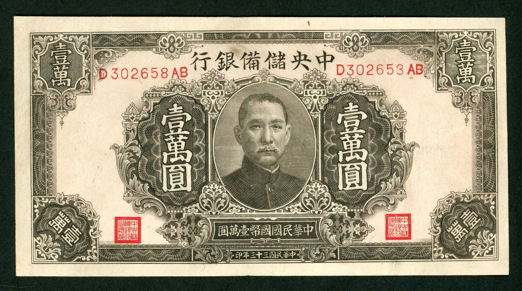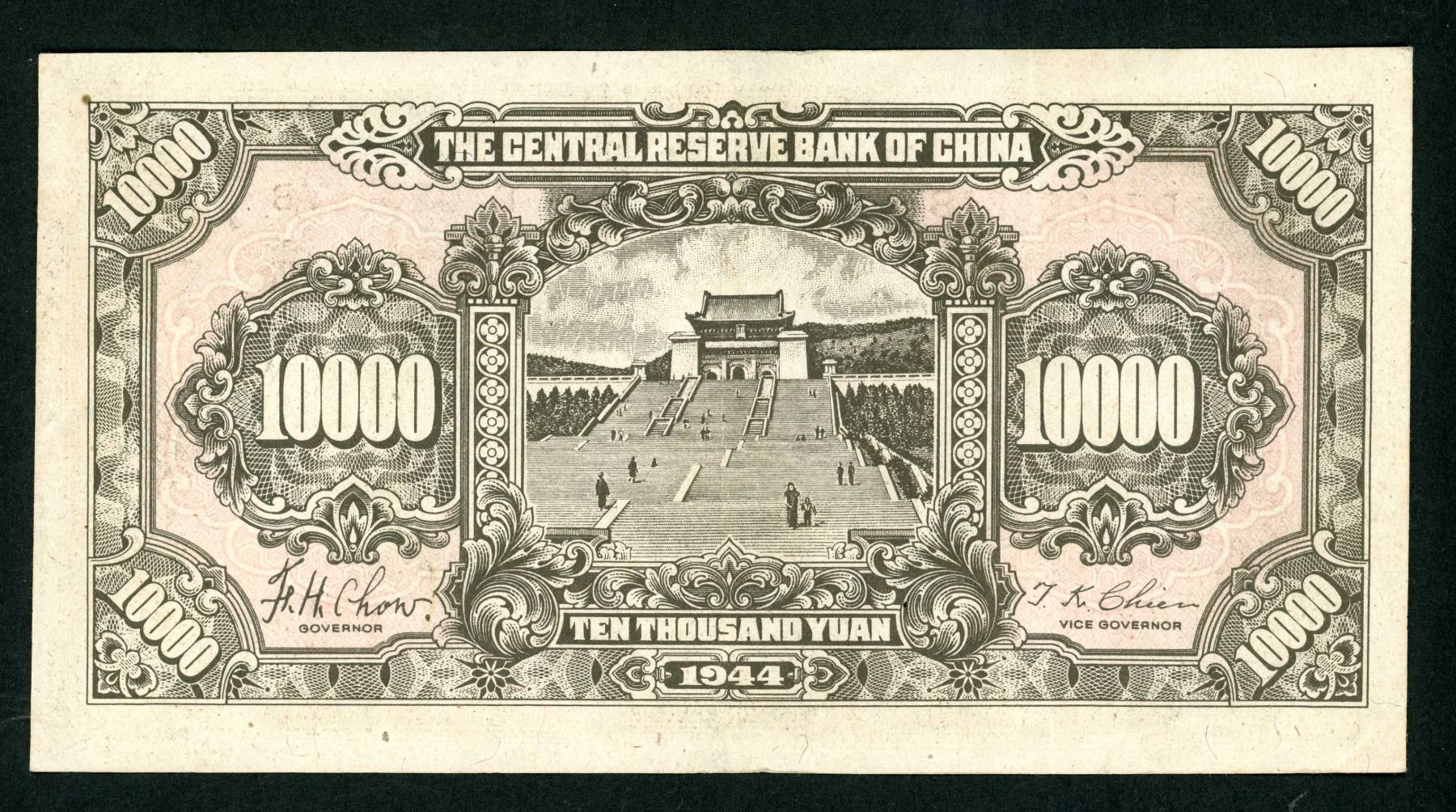 China 10,000 Yuan 1944 (1945), P-J36a Banknote Extra Fine