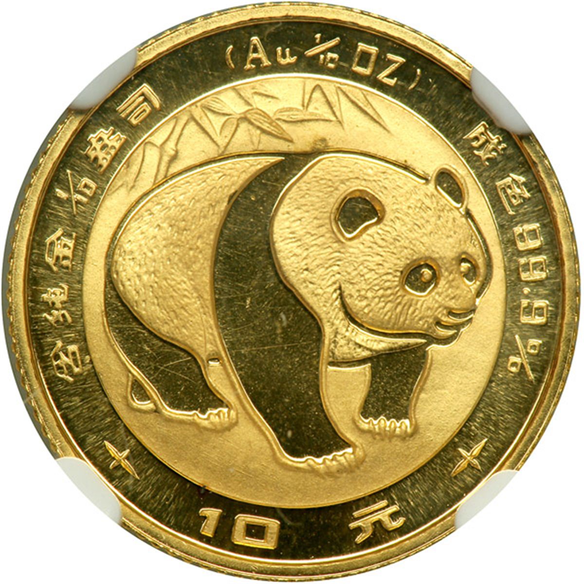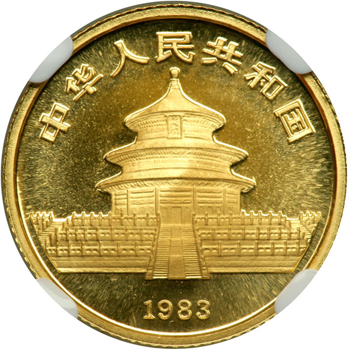 China. 10 Yuan, 1983. KM-69. Weight 0.0999 ounce. Panda right. NGC graded MS-69.
