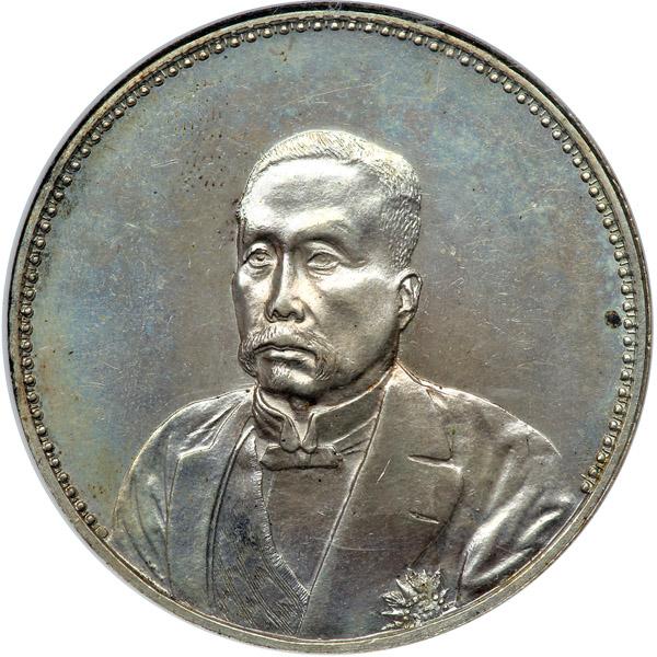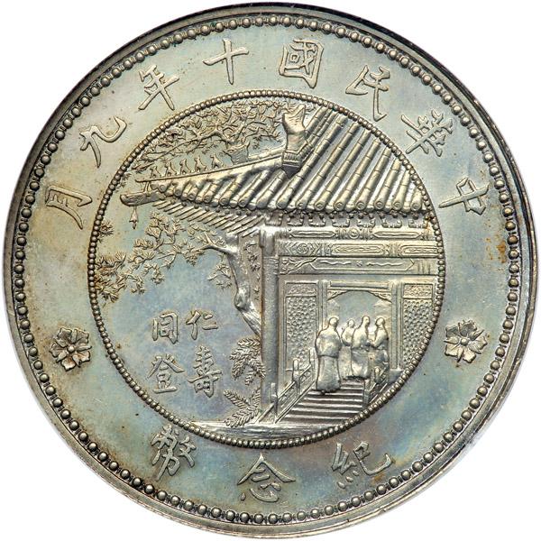 China. 1921 Silver Dollar. Hsu Shih-Chang. Reeded edge. Obv: 3/4 facing bust. Reverse: Entrance to pavilion. Kann-676; L & M 864. Delicately toned. NGC graded MS-64.