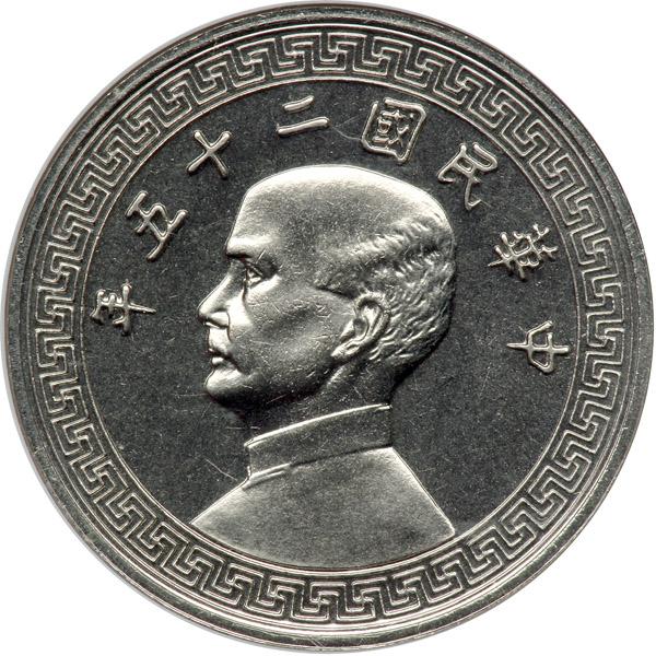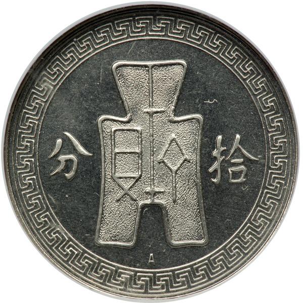 China. 1936-A 10¢ Struck at the Vienna Mint. Nickel. Sun Yat-sen founder of the Republic. KM Y-349.1. A brilliant untoned gem. Extremely Rare. NGC graded Proof 67.