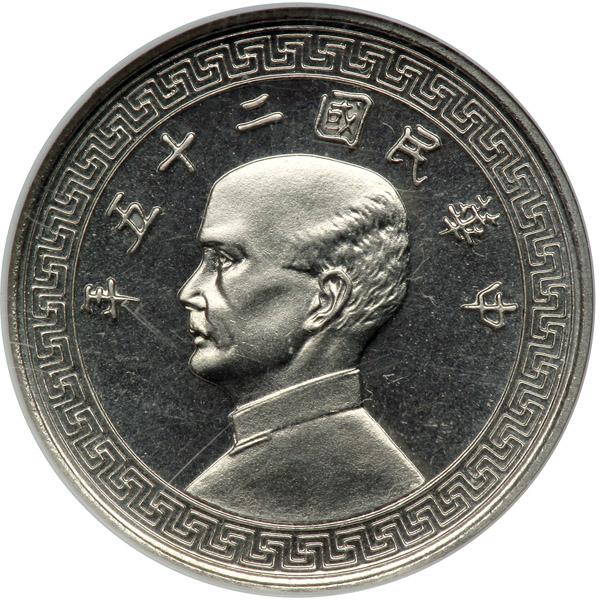China. 1936-A 5¢ Struck at the Vienna Mint. Nickel. Sun Yat-sen founder of the Republic. KM Y-348.1. A brilliant untoned gem. Extremely Rare. NGC graded Proof 67.