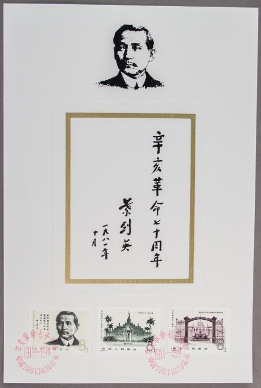 Chinese stamps. Commemorating the 70th anniversary of the 1911 revolution. Issued 1981. Three stamps with cancels. 22 x 16 cm.