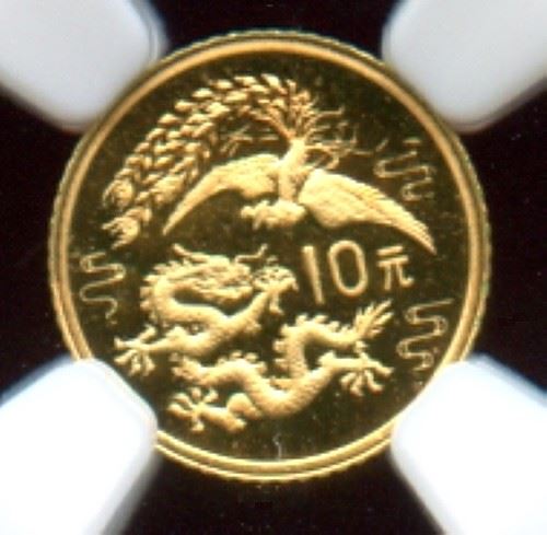 China 1990, Gold 10 Yuan, Dragon & Phoenix series, KM 317, Small 1g gold coin, Iconic Dragon & Phoenix design, No spots or problems, Gem NGC certified PF-69 Ultra Cameo