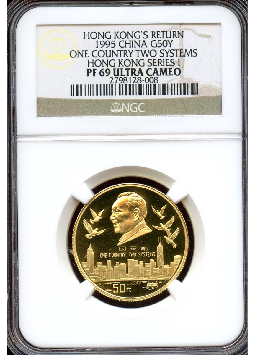 China 1995, Gold 50 Yuan, Hong Kong Return, 0.500oz AGW, Mintage 11,800 coins, KM 816, NGC certified PR-69 Ultra Cameo