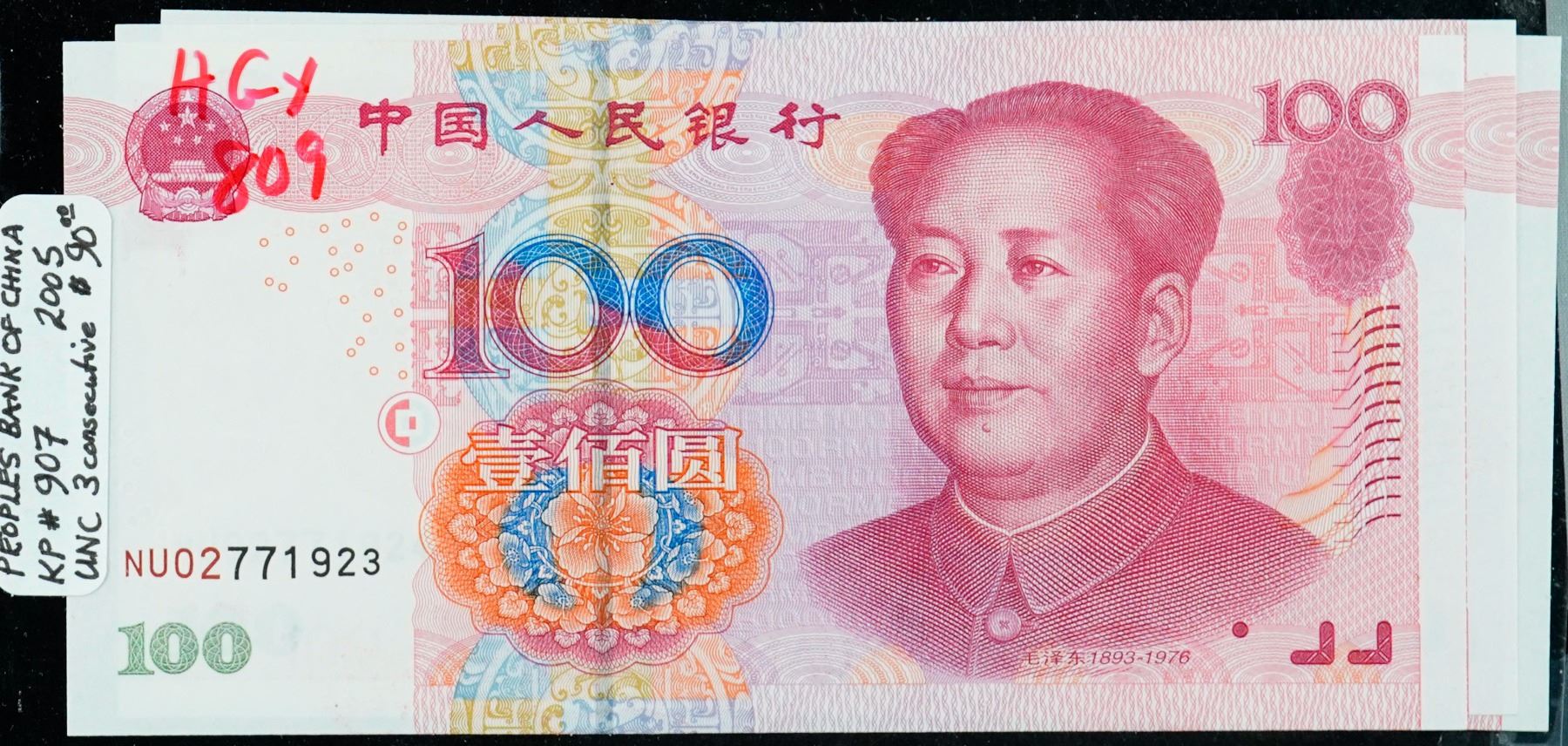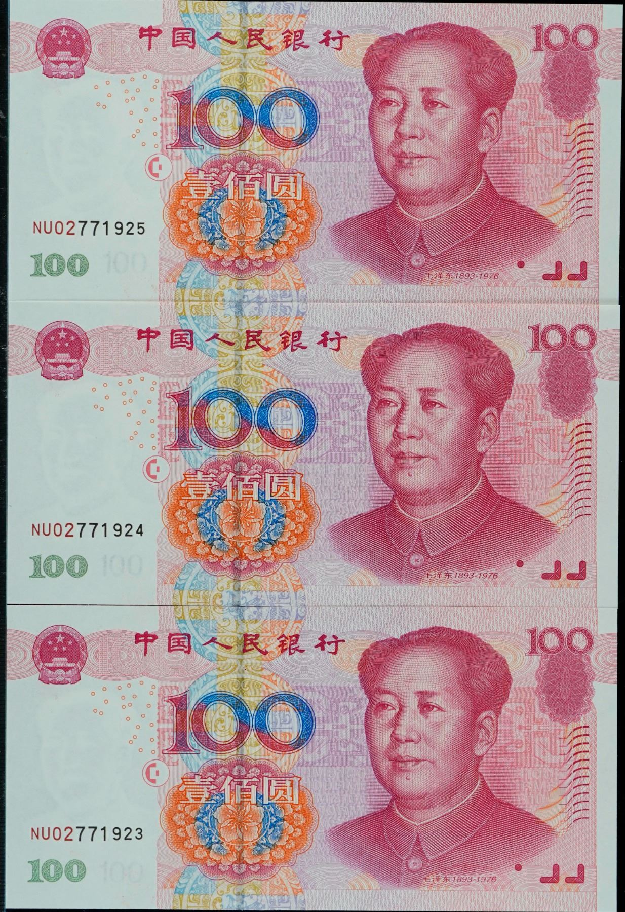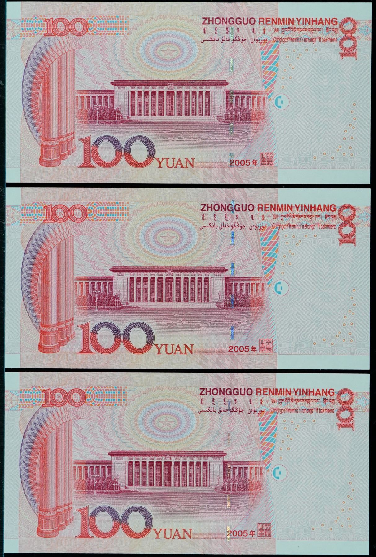 China; 2005 100 Yuan 3 consecutive notes