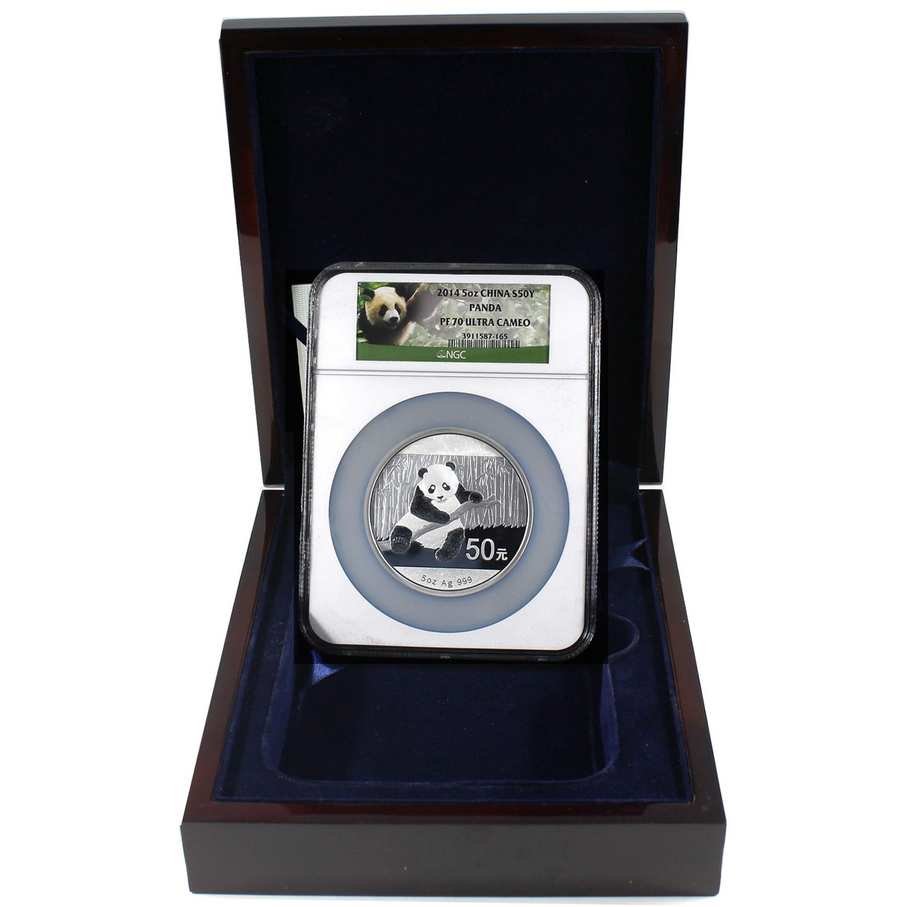 China 2014 China 5 Yuan 5oz Silver Panda NGC PF-70 Ultra Cameo Inside Deluxe Display Box with COA (ink on COA). TAX Exempt