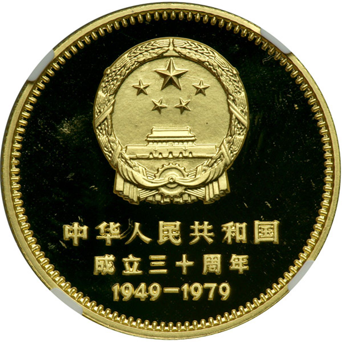 China. 400 Yuan, 1979. Fr-4; KM-6. Weight 0.4997 ounce. 30th Anniversary of People's Republic. Mao Tse-Tung Memorial. NGC graded Proof 69 Cameo.