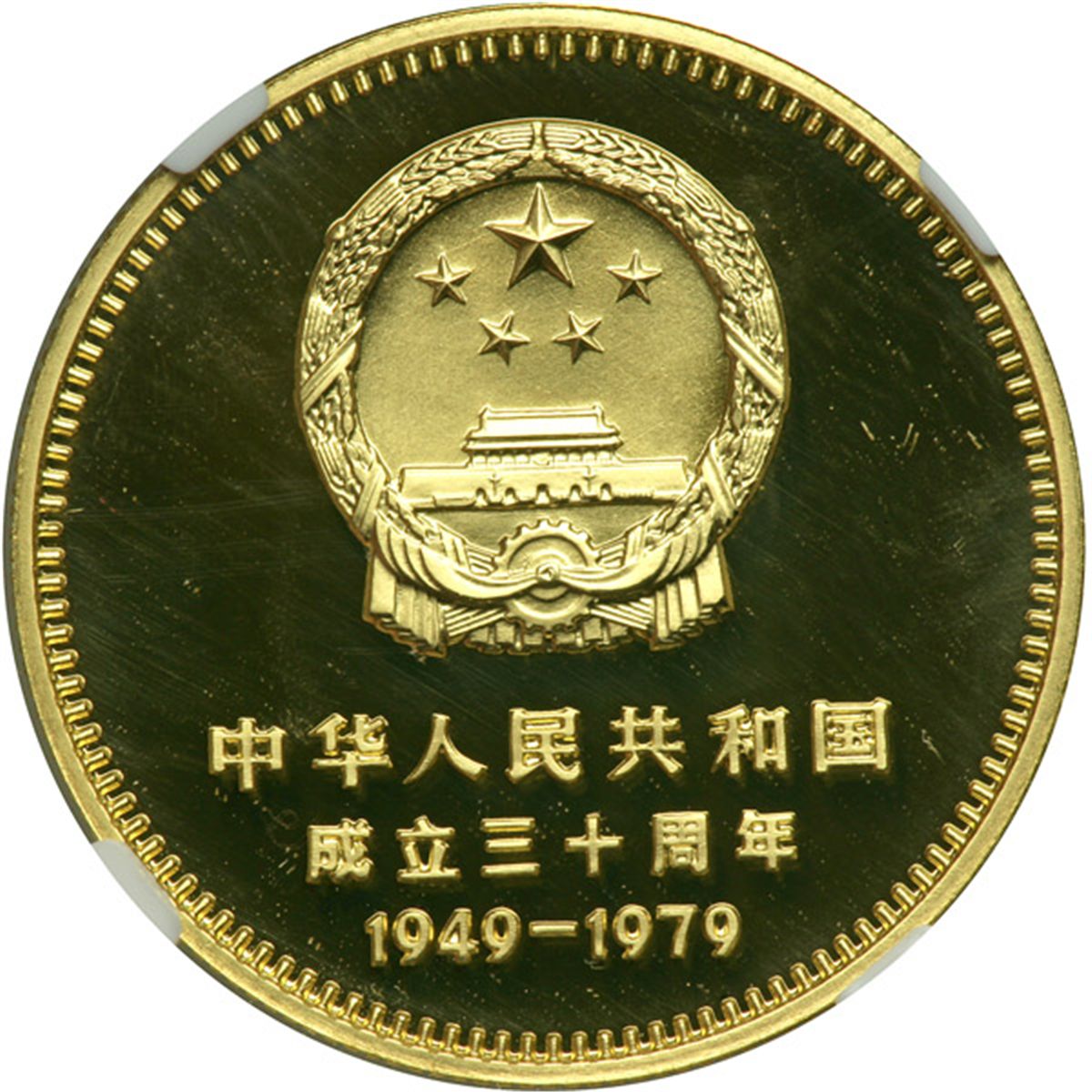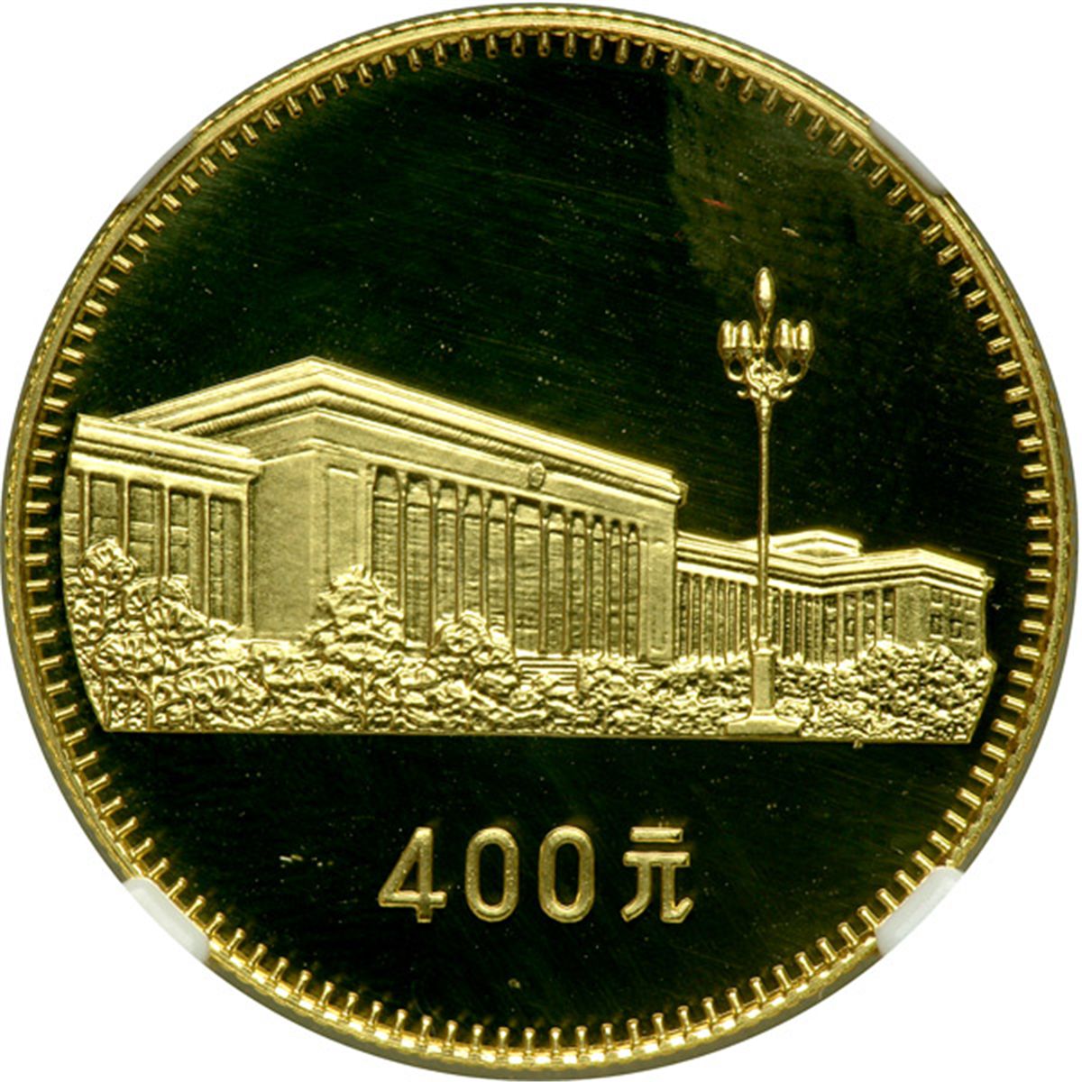 China. 400 Yuan, 1979. Fr-3; KM-7. Weight 0.4997 ounce. 30th Anniversary of People's Republic. Great Hall of the People. NGC graded Proof 69 Ultra Cameo.