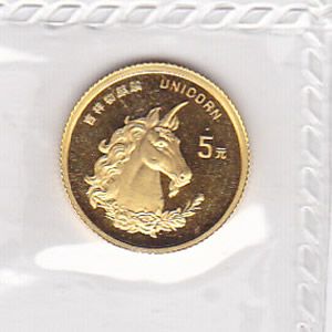 China 5 Yuan 1/20th ounce gold 1996, Unicorn **|**|** China 5 Yuan 1/20th ounce gold 1996, Unicorn ; MSRP: $250
