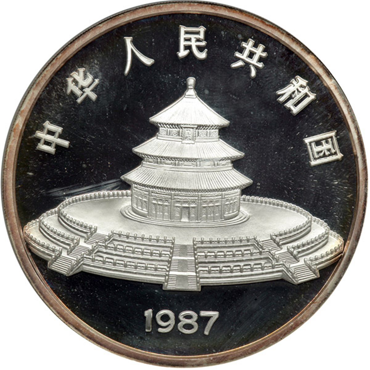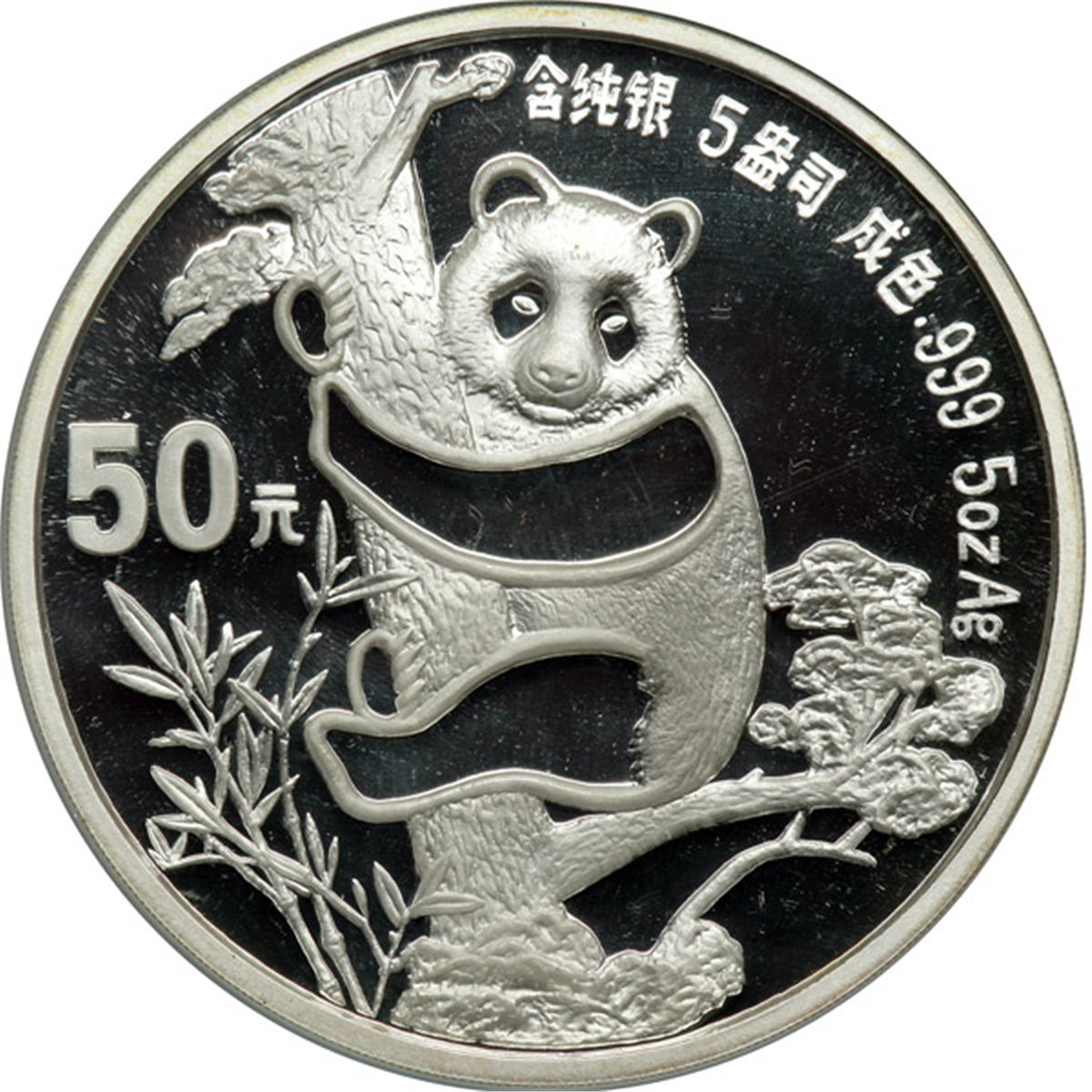China. 50 Yuan, 1987. KM-168. Silver. 4.9942 ounces. Panda clinging to tree trunk. In jumbo holder. NGC graded Proof 68 Ultra Cameo.