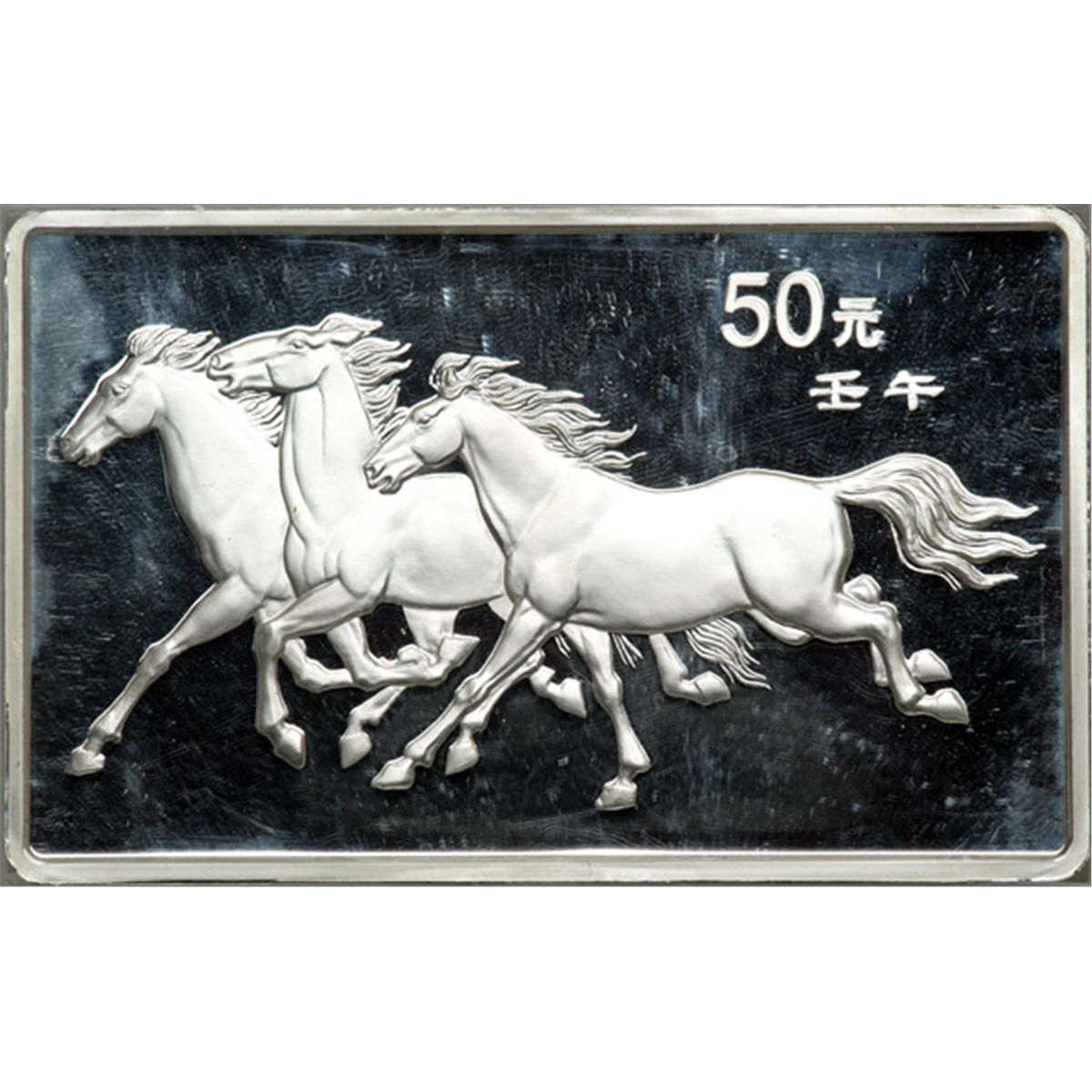 China. 50 Yuan, 2002. KM-1421. Lunar series. Mintage 1,888 pieces. Rectangle. Year of the Horse. NGC graded Proof 65 Ultra Cameo.