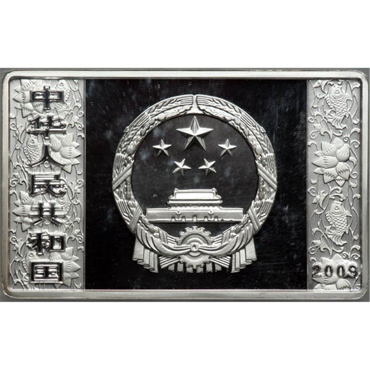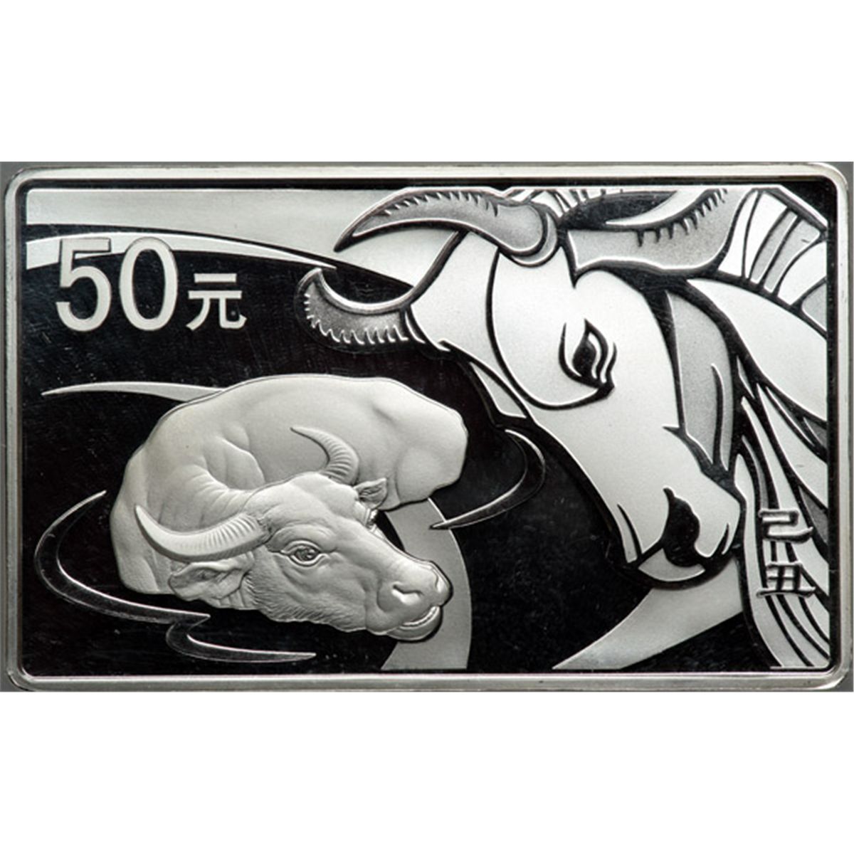 China. 50 Yuan, 2009. KM-. Lunar series. Mintage 1,888 pieces. Rectangle. Year of the Ox. NGC graded Proof 69 Ultra Cameo.