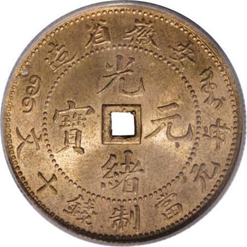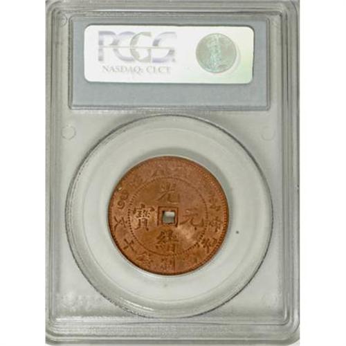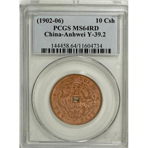 <B>Anhwei 10 Cash ND (1902-06),</B></I> KM-Y39.2, MS64 RED PCGS, with Province spelled AN-HUI and square central hole. Rare type and grade.<BR><BR><b>Shipping:</b> Coins & Currency (<a target="_blank" href="http://www.heritageauctions.com/common/shipping.php">view shipping information</a>)