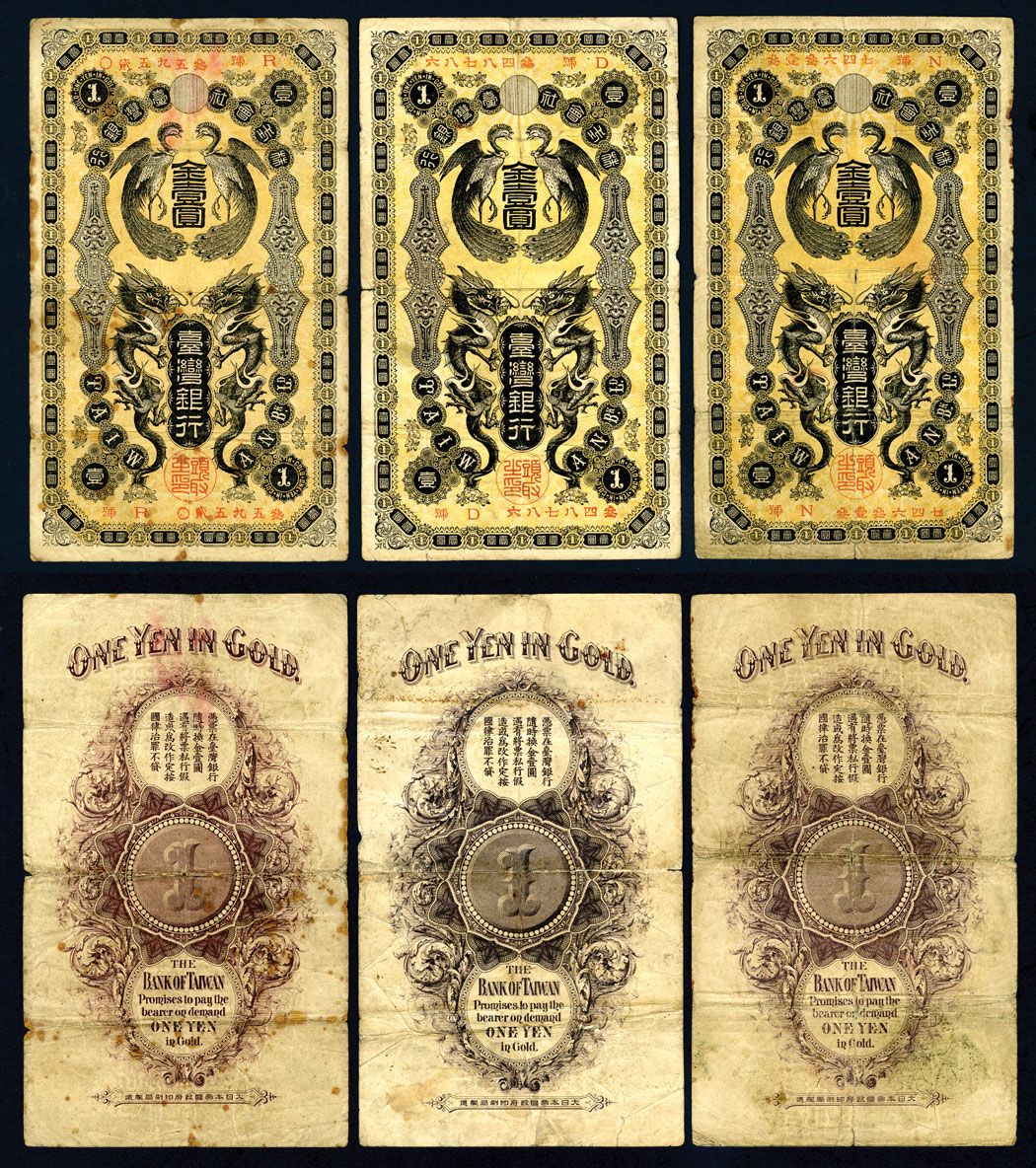 Taiwan, Bank of Taiwan (Japanese Influence), trio of issued notes, 1 Yen, (1904), P-1911, Fine condition and scarce.