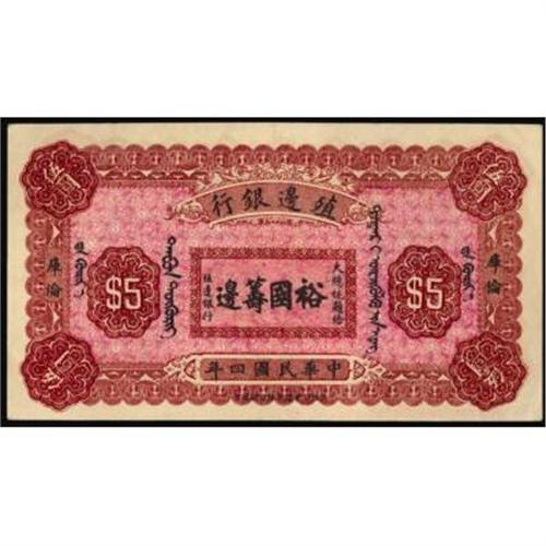 <style type="text/css"> body, td, th { font-family: Arial, Helvetica, sans-serif; font-size: 12px; color: #482424; margin: 0px; padding: 0px; } #header { background-image: url(http://www.bowersandmerena.com/ebay/images/template_v3_01.gif); clear: both; background-color: #590303; border-top-width: 2px; border-top-style: solid; border-top-color: #B38C4F; } #header #header_wrapper { height: 75px; clear: both; width: 800px; margin-right: auto; margin-left: auto; background-image: url(http://www.bowersandmerena.com/ebay/images/template_v3_03.gif); background-repeat: no-repeat; background-position: right; color: #F3EDCC; } #header #header_wrapper #header_logo { float: left; height: 75px; width: 444px; background-image: url(http://www.bowersandmerena.com/ebay/images/template_v3_02.gif); background-repeat: no-repeat; font-size: 10px; text-transform: capitalize; color: #B38C4F; } #header #header_wrapper #header_right { float: left; height: 75px; width: 356px; text-align: right; } #header #header_wrapper #header_right #headerLoginBtn { margin-bottom: 30px; } #header #header_wrapper #header_right input#txtSearch { color: #B49056; border: 1px solid #B49056; width: 175px; padding-top: 3px; padding-right: 3px; padding-bottom: 4px; padding-left: 3px; } #nav { height: 37px; background-image: url(http://www.bowersandmerena.com/ebay/images/template_v3_05.gif); clear: both; } #nav #nav_wrapper { height: 35px; width: 800px; margin-right: auto; margin-left: auto; border-left-width: 1px; border-left-style: solid; border-left-color: #B38C4F; } #nav #nav_wrapper a { padding-right: 15px; padding-left: 15px; border-right-width: 1px; border-right-style: solid; border-right-color: #B38C4F; height: 25px; padding-top: 10px; display: block; float: left; text-decoration: none; font-weight: bold; color: #5D0303; } #nav #nav_wrapper a:hover { color: #B38C4F; } #nav #nav_wrapper #search { float: right; padding-top: 7px; } #nav #nav_wrapper #search #txtSearch { font-family: Arial, Helvetica, sans-serif; font-size: 10px; text-transform: uppercase; color: #D2AE75; border: 1px solid #B38C4F; padding: 3px; } #content_bgd { background-image: url(http://www.bowersandmerena.com/ebay/images/template_v3_09.gif); background-repeat: repeat-y; background-position: center; padding-top: 15px; padding-bottom: 15px; background-color: #FBFBDB; } #content_wrapper { clear: both; height: auto; width: 800px; margin-right: auto; margin-left: auto; } .LotDetailWhite { line-height:normal; font-size:13px; font-family: arial,helvetica,sans-serif; color: White; font-weight: bold; } .LotDetailInformation { line-height:normal; font-size: 13px; font-family: arial,helvetica,sans-serif; } .LotDetailMessage { line-height:normal; font-size: 13px; font-family: arial,helvetica,sans-serif; color: red; } } tr.HeaderAuctionTitle td { color: #000000; font-weight: bold; padding: 2px; background-image: url(http://www.bowersandmerena.com/ebay/images/template_v3_05.gif); background-repeat: repeat-x; border-bottom-width: 1px; border-bottom-style: solid; border-bottom-color: #B38C4F; } table.AuctionSummary a, table.AuctionSummary a:link, table.AuctionSummary a:visited { color: #0000FF; text-decoration: none; } } td.tableHeaderLeft { border-left-width: 1px; border-left-style: solid; border-left-color: #B38C4F; } td.tableHeaderRight { border-right-width: 1px; border-right-style: solid; border-right-color: #B38C4F; } td.tableCellMiddle { border-left-width: 1px; border-left-style: solid; border-left-color: #B38C4F; border-right-width: 1px; border-right-style: solid; border-right-color: #B38C4F; padding: 5px; } tr.footer td { border-top-width: 1px; border-top-style: solid; border-top-color: #B38C4F; } </style> </head> <body> <div id="header"> <div id="header_wrapper"> <div id="header_logo"> </div> <div id="header_right"> </div> </div> </div> <div id="nav"> <div id="nav_wrapper"> <a href="http://www.bowersandmerena.com">Our eBayLive Auctions</a> <a href="#PaymentInfo">Payment Information</a> <a href="#ShippingInfo">Shipping Information</a> <a href="#About">About Bowers and Merena</a> </div> </div> <div id="content_bgd"> <div id="content_wrapper"> <table width="100%" border="0" cellpadding="5" cellspacing="0" class="AuctionSummary"> <tbody> <tr class="HeaderAuctionTitle" style="height: 25px;"> <td align="left" class="tableHeaderLeft" > </td> <td align="center" class="tableHeaderRight"> <span style="font-size: large;">Lot #2326. China. Bank of Territorial Development, 1915 Issue.</span> </td> </tr> <tr> <td colspan="3" class="tableCellMiddle"> 1915, $5, P-574, Red brown and black on pink undertint, AU condition. Remainder without signature. Not known issued, only as a remainder. Scarce note