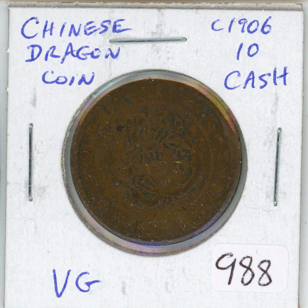 China. C1906 10 Cash. Chinese Dragon coin. VG.