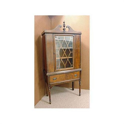 Antique China Cabinet has spacious shelving with large glass door for showcasing.