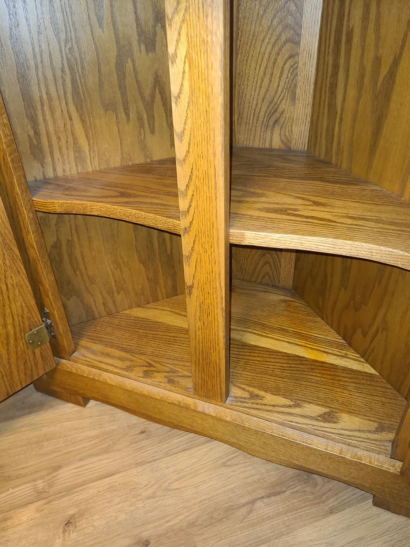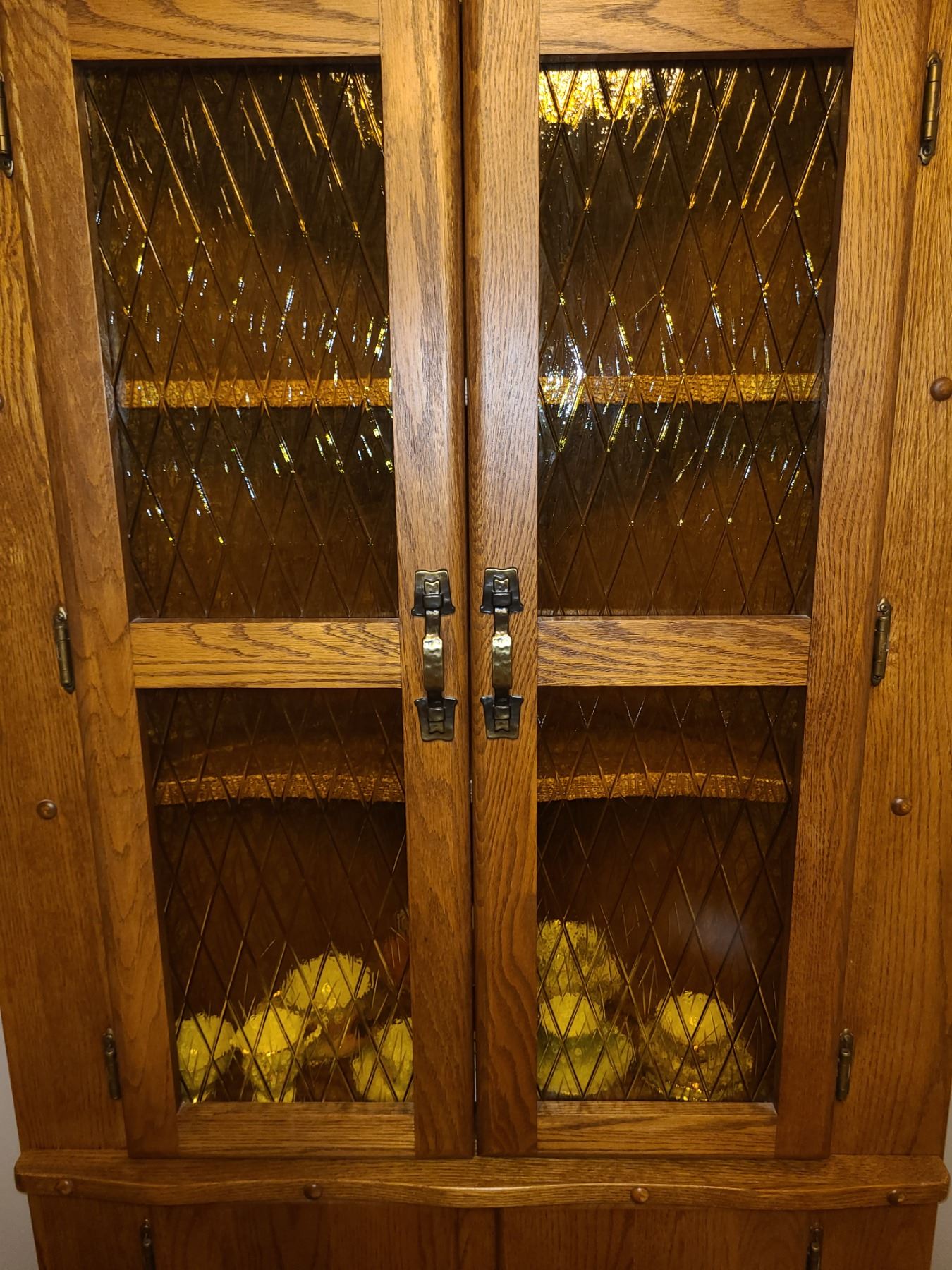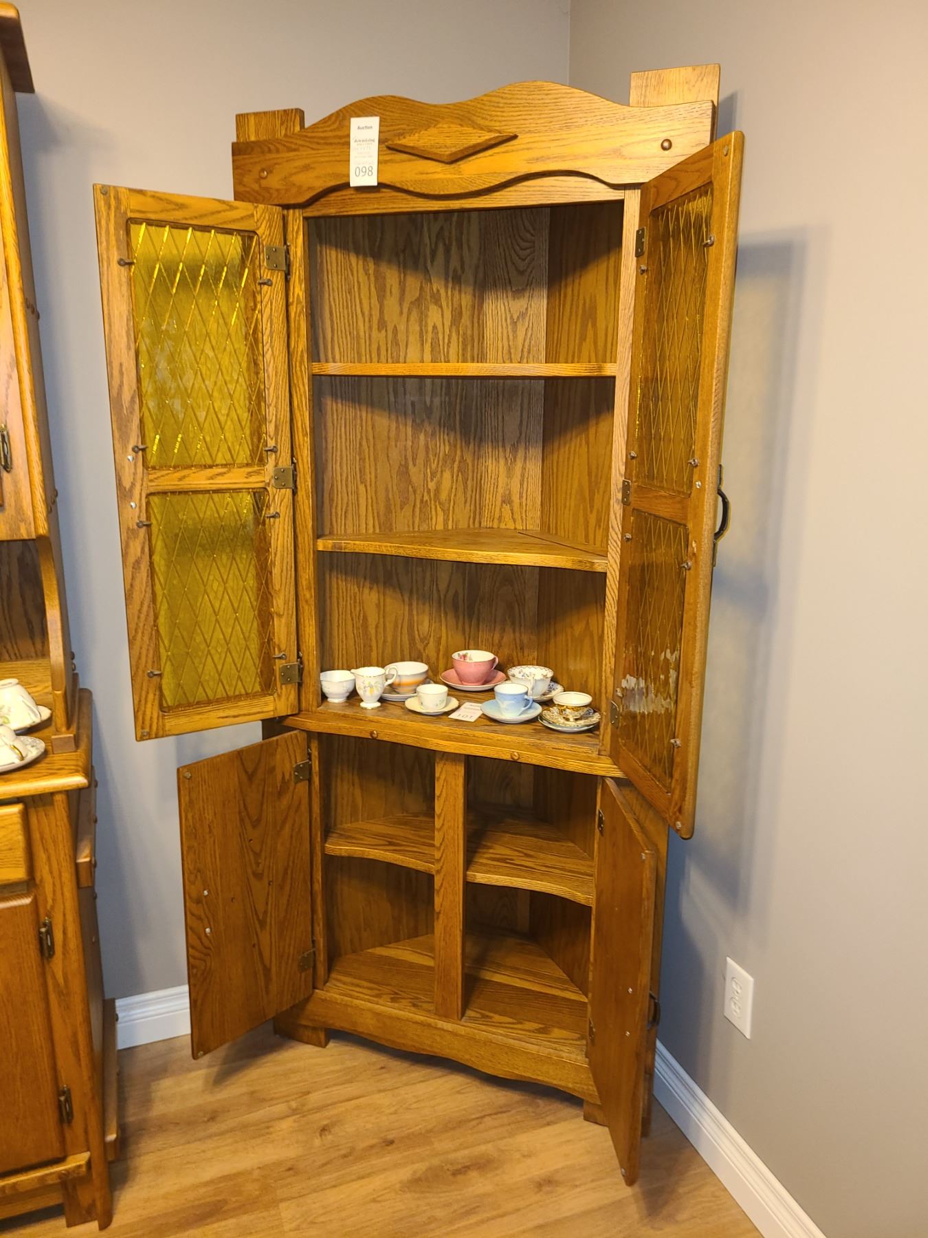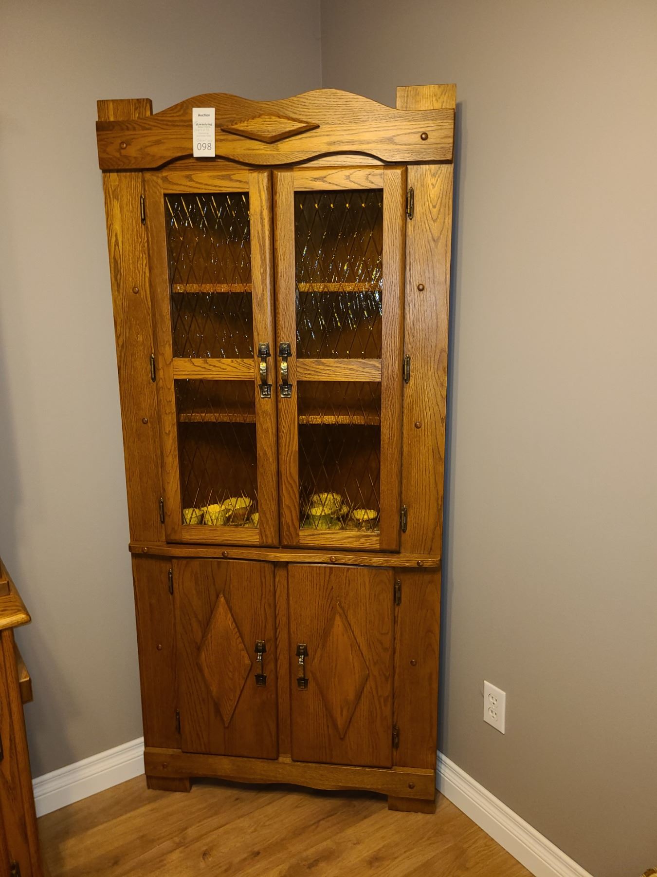 Corner China cabinet 33x15x72. Contents not included. Bring help to move. Pickup at 11 am.