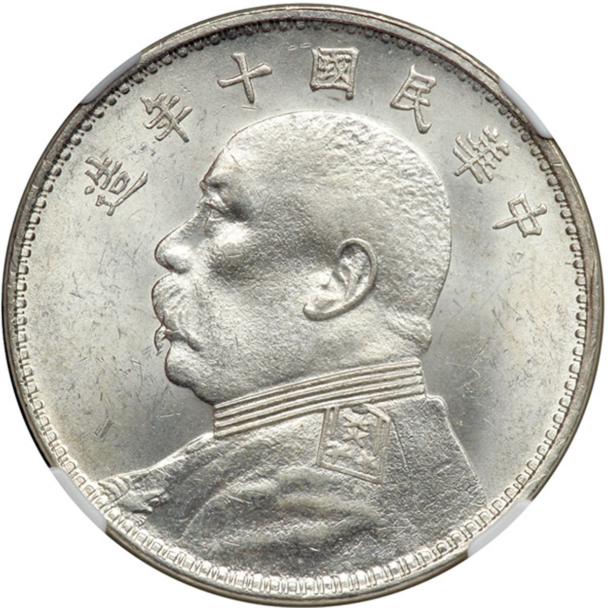 China. Dollar, 1921. L&M-79; Y-329.6. Year 10. Yuan Shih-kai. Frosty white mint luster. NGC graded MS-64.