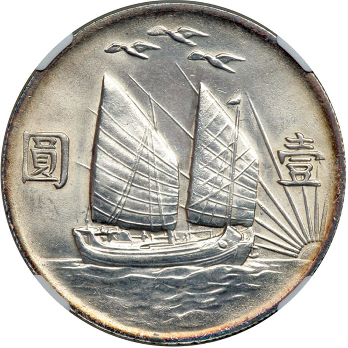 China. Dollar, 1932. L&M-108; Y-344. Bust of Sun Yat-sen left. Reverse: Birds over Junk. Virtually no surface marks with good eye appeal overall. Light golden toning. NGC graded About Uncirculated, Details (Polished).