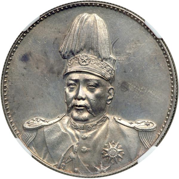 China. Dollar, ND (1914). Y-322; L&M-858. Portrait in military uniform, with high feather-hat. Reverse: One Yuan within open wreath. Founding of the Republic. NGC graded About Uncirculated, Details (Surface Hairlines).