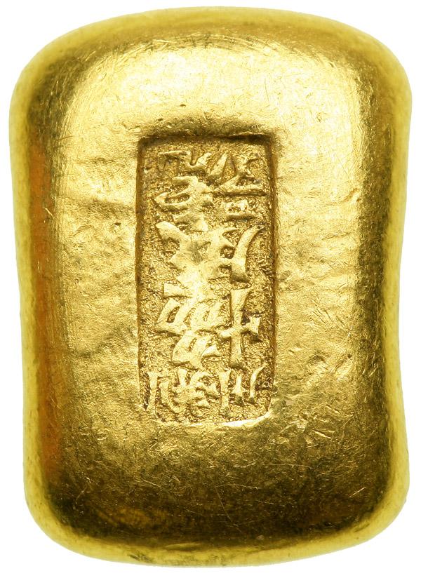 China. Gold 1 Tael Ingot, ND. 31 grams. 20 mm x 15 mm. 1 Stamp each side. Late Qing / Early Republic (1644-1911). Very Fine.