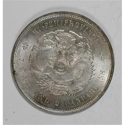 <B>Hupeh Dollar ND (1909-11),</B></I> KM-Y131, choice brilliant UNC, lightly toned and very attractive, tiny bit of superficial patination on the rim, possibly removable.<BR><BR><b>Shipping:</b> Coins & Currency (<a target="_blank" href="http://www.heritageauctions.com/common/shipping.php">view shipping information</a>)