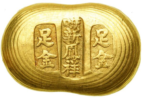 China - Hupeh. Gold 1 Tael, ND. 31.2 grams. 23.3 mm. Xin Feng Xiang Bank. Hang Kou. Late Ching. Three stamps. Reverse: Blank. Very Fine.