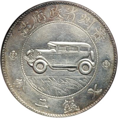 China - Kweichow. Auto Dollar, CD 17th Year (1928). Kann-757; KM-Y428. Issued to commemorate the first road built in province of Kweichow. Sharp strike. NGC graded AU-53.