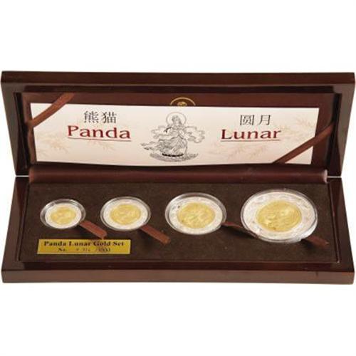 <B>People's Republic Bi-metallic 4-piece gold and silver Panda Lunar Prestige Set 2005,</B></I> 50, 100, 200, and 500 Yuan, all Gem Proof in the original wooden case of issue with certificate.<BR><BR><b>Shipping:</b> Coins & Currency (<a target="_blank" href="http://www.heritageauctions.com/common/shipping.php">view shipping information</a>)