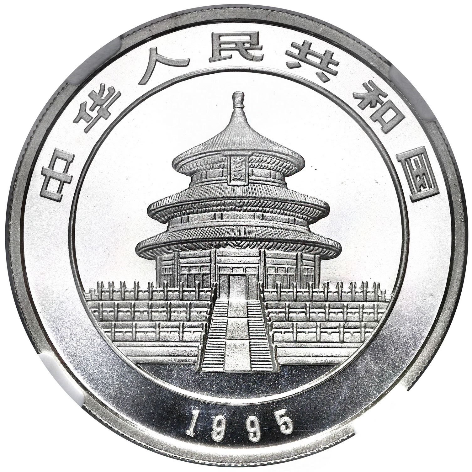 China (People's Republic), silver 10 yuan (1 oz) Panda, 1995, short twig, micro date, NGC MS 69, ex-