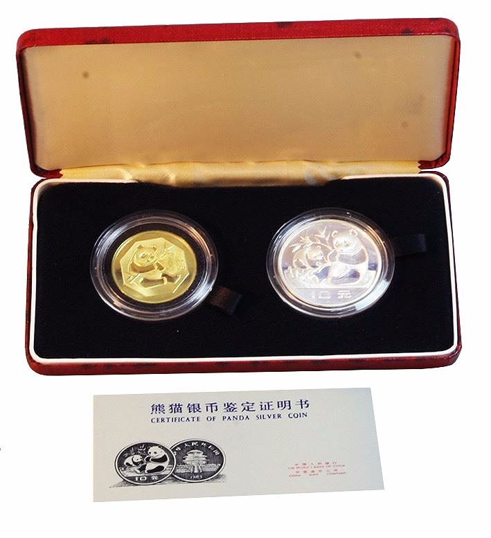 China, Proof Panda Set, 1983, contains Silver Ten Yuan and One Yuan, in original red case of issue with certificate of issue (1 set, 2 coins), a scarce and sort after set, which sells for around $2000 on eBay!, relisted due to a non-payer