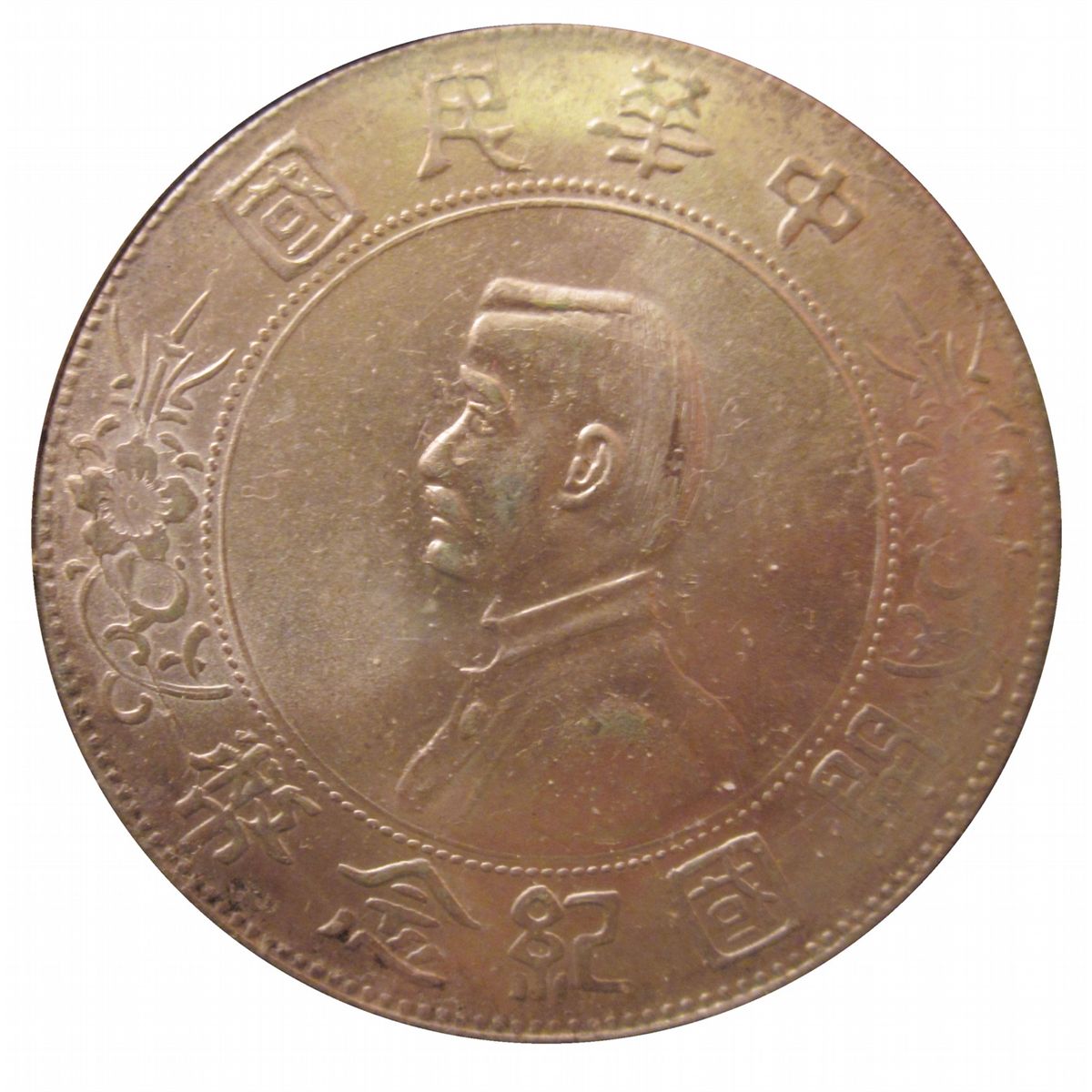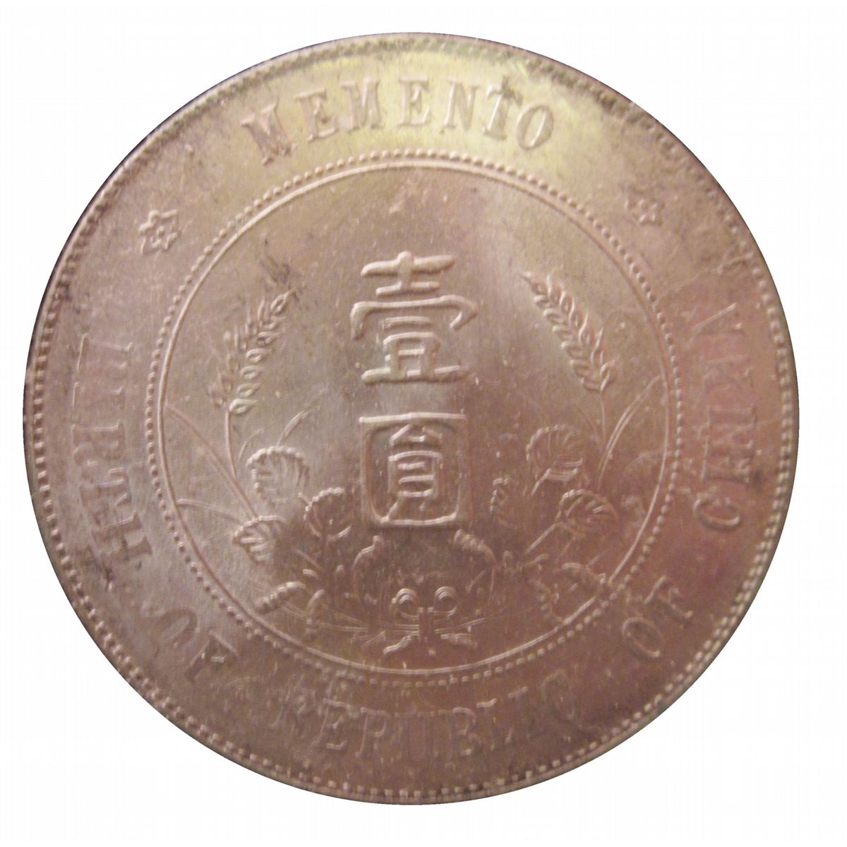 China Republic; 1 dollar (Yuan) (1927) Memento, 2 rosettes, incuse reeding, Y #318a.1.